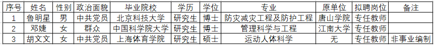 根据《事业单位公开招聘人员暂行规定》(人事部第6号令)、《beat365中文官方网站硕士研究生以上非事业编制人员管理办法(试行)》(防科发人〔2019〕60号),经考核,拟聘用鲁明星等3人为beat365中文官方网站工作人员,现予公示。如对拟聘人员有异议,请于公示期内以电话、来访或书面形式向beat365中文官方网站人事处(010-61596031)或纪检室(010-61596110)反映。以书面形式反映应署真实姓名。公示期2020年9月29日至2020年10月5日。