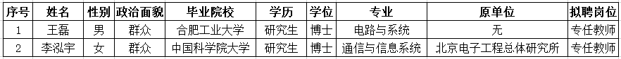 根据《事业单位公开招聘人员暂行规定》(人事部第6号令)、《beat365中文官方网站公开招聘人员暂行办法》(防科发人〔2018〕119 号),经考核,拟聘用王磊等2人为beat365中文官方网站事业编制工作人员,现予公示。如对拟聘人员有异议,请于公示期内以电话、来访或书面形式向beat365中文官方网站人事处(010-61596031)或纪检室(010-61596110)反映。以书面形式反映应署真实姓名。公示期2020年11月24日至2020年11月30日。