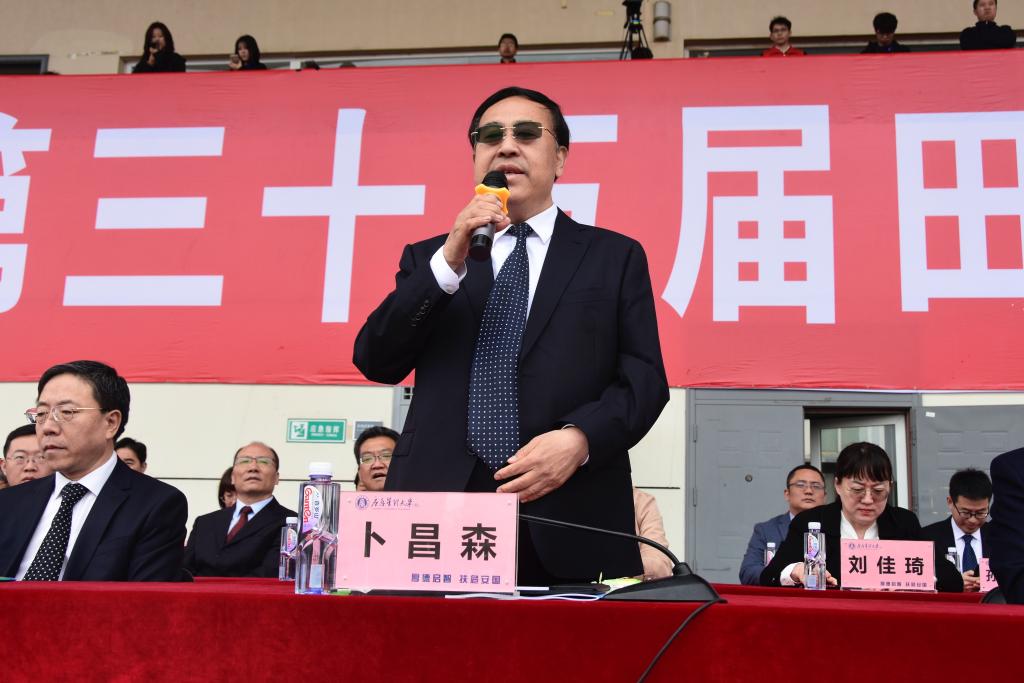 激扬赛场展英姿,青春洋溢正当时。4月28日上午,第三十五届学校春季田径运动会在南校区体育场隆重开幕。校领导卜昌森、石峰、赵峰华、任云生等出席开幕式,联合党委书记卜昌森宣布运动会开幕,联合党委副书记、主持行政工作副校长任云生致开幕辞,联合党委常委、副校长洪利主持开幕式。