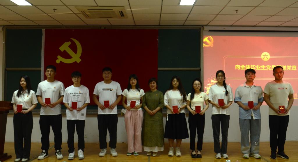 电控学院党总支书记贾甚杰向毕业生党员赠送党章