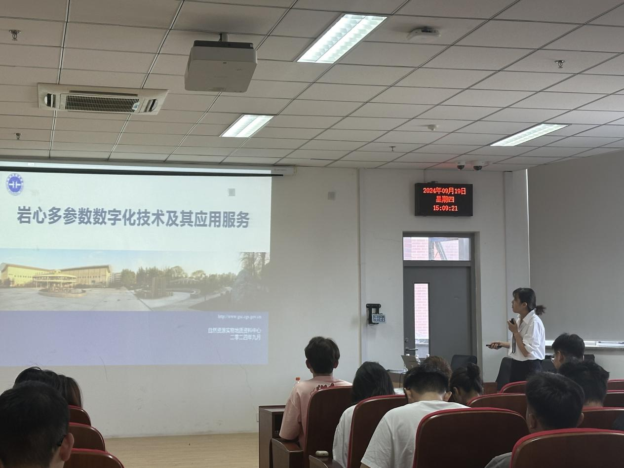 9月19日,河北省地矿局第七地质大队李云涛老师应邀为学生作了题为“揭秘浅层地热能源”的科普讲座,详细介绍了浅层地热新能源的特点和优势,以及如何将其应用于实际生活中。中国地质调查局国土资源实物地质资料中心史维鑫老师应邀为同学们作了“岩心多参数数字化技术及应用服务”的科普讲座,使学生进一步了解了岩心数字化技术的专业知识。讲座现场气氛热烈,讲解老师和同学们积极互动、讨论,将课本上的知识与实践相结合,加深了学生对浅层地热新能源和岩心多参数数字化技术的理解。