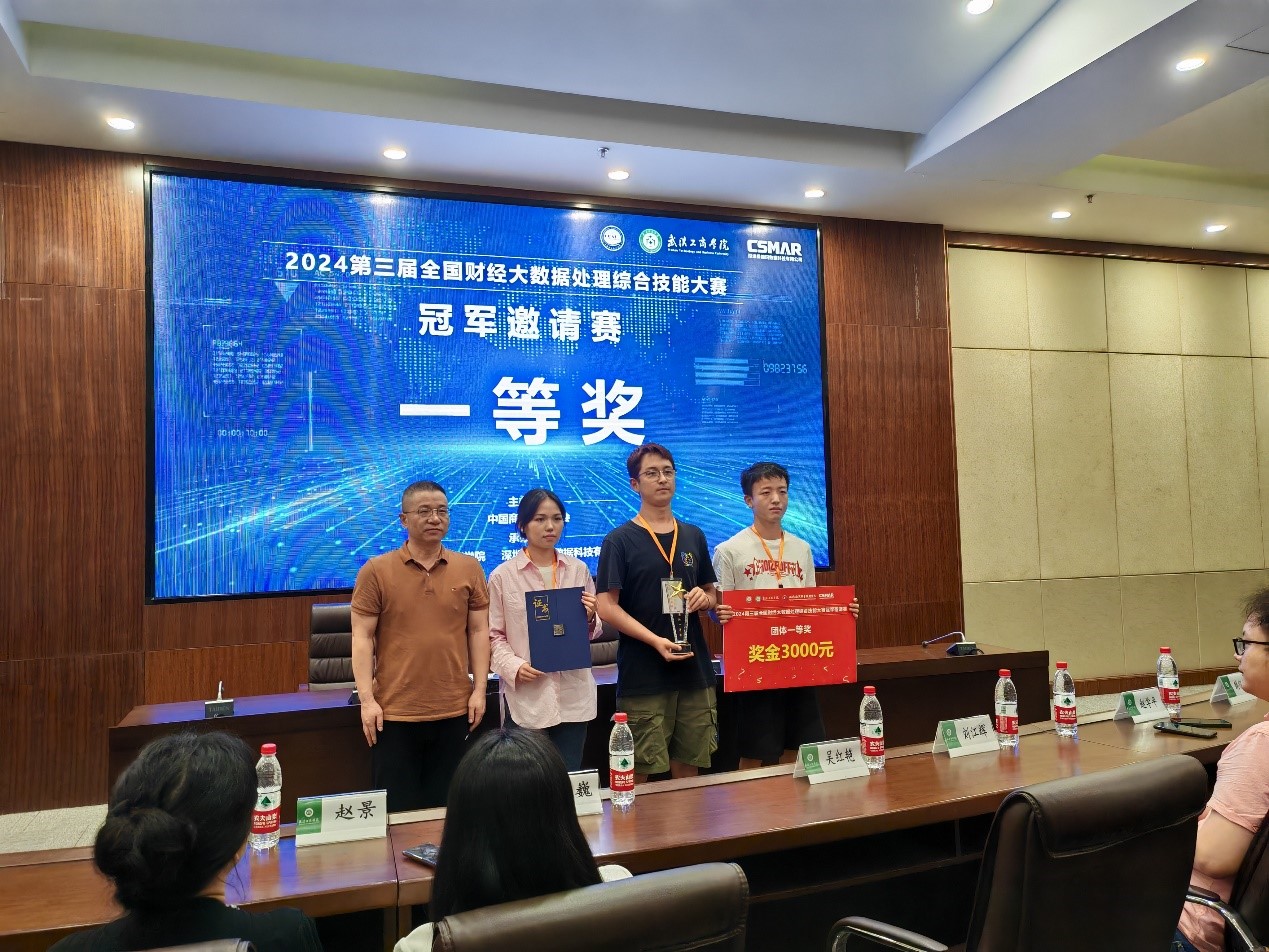 2024年第三届全国财经大数据处理综合技能大赛近日在武汉工商学院举办冠军邀请赛,学校经济管理学院和信息工程学院联合组织学生团队在全国赛中成绩居前,被邀参加冠军赛。经过紧张激烈的数轮角逐,学校学生代表团队(王志蕊、赵鹏祥、王庆杰)与哈尔滨工业大学并列荣获数据分析组团体一等奖,获得奖金3000元;团队指导教师耿贵珍、袁庆禄、孙岩、王小英、高磊等荣获优秀指导教师称号。