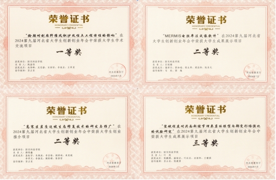 近期,第九届河北省大学生创新年会获奖名单公布并颁发证书。学校由教务处组织征集、筛选学术交流项目2项、创业推介项目2项、成果展示项目3项参加省组委会网络评审,马欢、苏占东老师带领的4个项目晋级现场展示交流,最终获得一等奖1项,二等奖2项,三等奖1项。