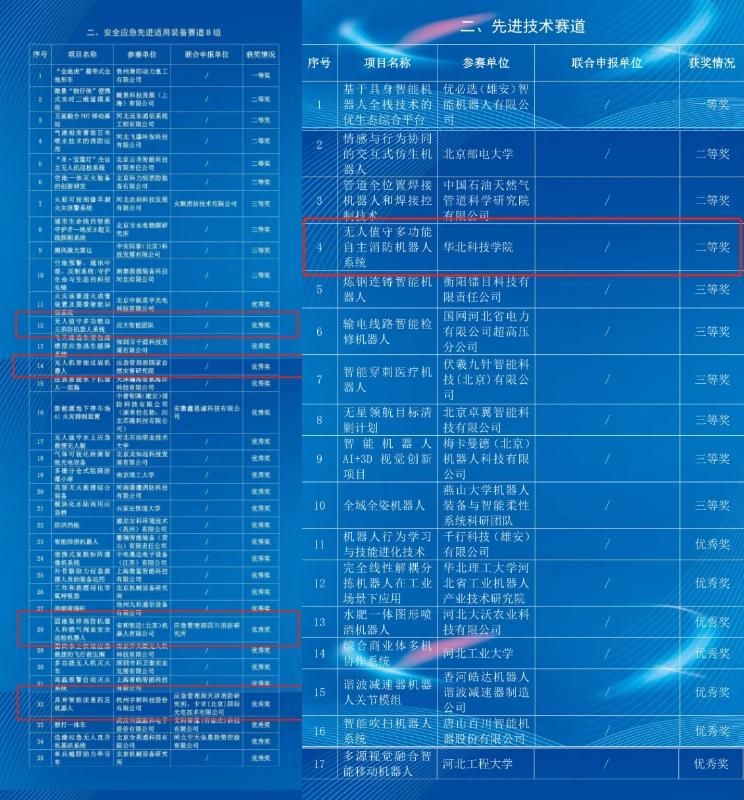 6月26日,第二届雄安未来之城场景汇“雄安安全应急创新技术应用大赛”决赛在雄安未来之城场景汇科创园正式启动。在beat365信息与控制工程学院的精心组织安排下,推荐河北省安全生产与应急处置特种机器人重点实验室科研成果参赛。经过多轮角逐,“应大智能”团队“无人值守多功能自主消防机器人系统”最终以第12名的成绩获得优秀奖。在同期举办的“雄安国际机器人大赛”中,该成果以第4名的成绩获得了总决赛二等奖。