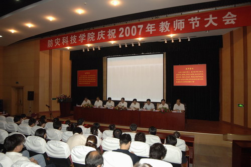 9月10日下午,我院召开教职工大会热烈庆祝2007年教师节。中国地震局党组成员、副局长赵和平、人事教育与科技司司长何振德、副处长王峰及学院领导班子成员等出席了大会。会议由院党委副书记、副院长宿景贵主持。