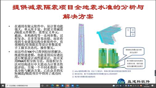 高上宇经理首先介绍了YJK软件的常规设计模块的操作流程,然后详细介绍了静力弹塑性分析模块YJK-PUSH和隐式动力弹塑性分析模块YJK-EP的软件原理和相关参数,最后结合具体工程案例对两个模块的实际操作流程进行了介绍。