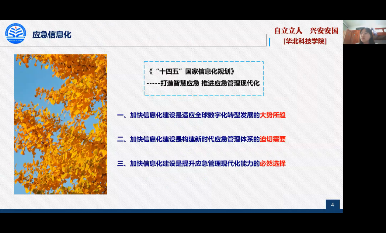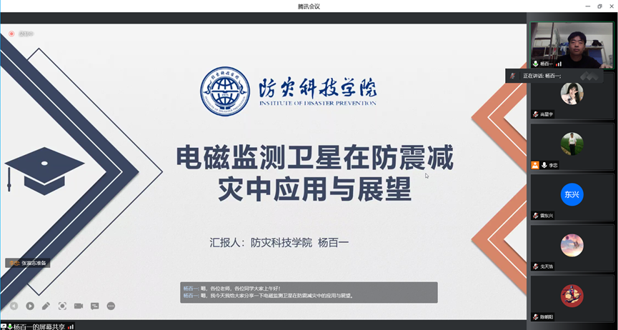 26名研究生围绕应急信息化,从各自不同的研究领域和方向汇报各自的研究成果和科研历程,内容涉及政策解读、矿井突水、矿山监测、城市内涝、地震监测、森林火灾、高压电干扰检测、信息安全以及智能技术前沿等领域。