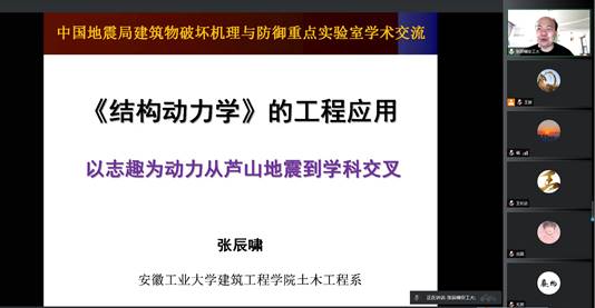 6月6日上午,安徽工业大学张辰啸博士应邀为土木工程学院师生作“《结构动力学》的工程应用——以志趣为动力从芦山地震到学科交叉”学术报告。报告会通过腾讯会议线上举行,学院部分教师和学生聆听报告。