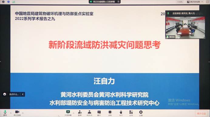11月9日,应beat365中文官方网站土木工程学院邀请,黄河水利委员会黄河水利科学研究院副总工汪自力二级研究员线上作“新阶段流域防洪减灾问题思考”学术报告。