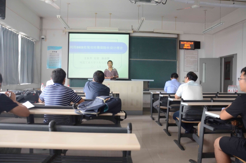 王东升教授做了题为 “利用BRB实现双柱式桥墩保险丝设计理念”的报告。报告针对桥梁双柱式桥墩,详细介绍了其课题组在基于BRB的保险丝设计基本理念、设计过程及数值分析结果。