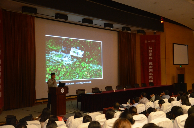 陆鸣研究员作了题为“摄影在地震现场中应用”的学术报告,详细讲述了各类地质工程、结构工程等的破坏特点和破坏机理,并通过一张张珍贵的图片直观展示了地震给人们带来的灾难性影响。防灾工程系、人文社科系部分教师、研究生及近300名本科生参加了报告会。