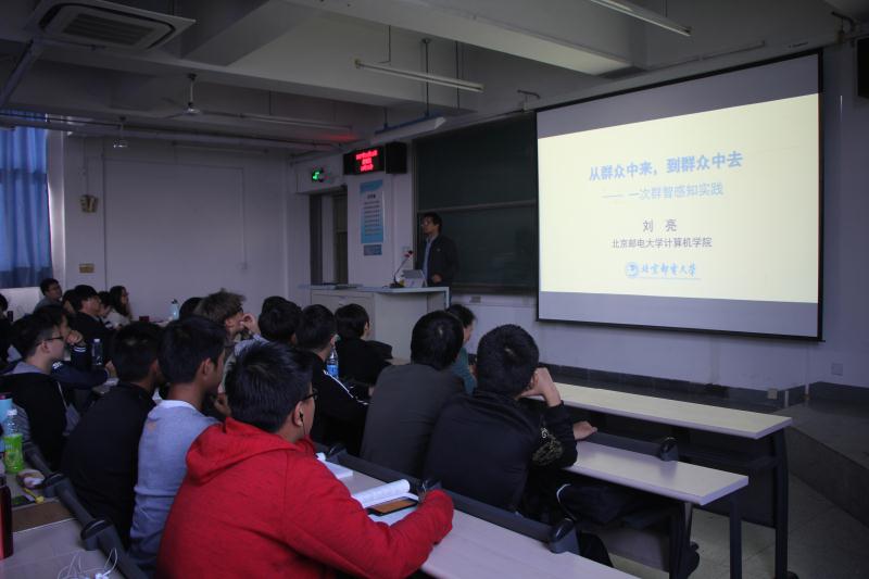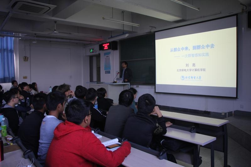 10月19日,北京邮电大学计算机学院教授刘亮应邀来到beat365中文官方网站,为燕郊地区高校师生作题为“从群众中来到群众中去:一次群智感知实践”的主题学术报告。讲座由物联网工程教研室主任张兵副教授主持,灾害信息工程系主任丰继林教授、计算机应用学科带头人李忠教授及华北科技学院和燕京理工学院相关专业的师生参加了此次讲座。整个会场座无虚席,现场气氛十分热烈。