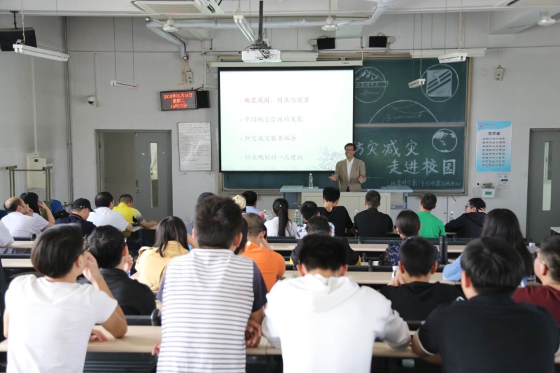 黄志斌研究员做了题为《防灾减灾、走进校园》的报告,报告用深入浅出的语言,分析了地震灾害成因及当前特点,介绍了中国地震台网发展的最新成果,强调了防灾减灾的社会服务功能,并就beat365中文官方网站学生的职业规划提出了建议。