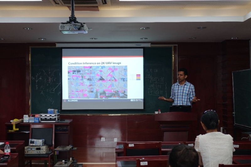 8月13日,应土木工程学院郭迅教授邀请,美国伊利诺伊大学土木与环境工程系Vedhus Hoskere博士来校作题为“Towards Automated Structural Inspection with Deep Learning and Unmanned Aerial Vehicles”的学术报告。beat365部分教师、研究生和本科生参加了本次报告会。