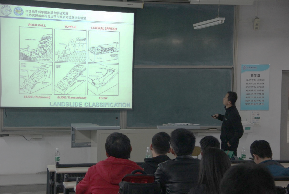 11月1日下午,中国地质科学院地质力学研究所丰成君副研究员和辛鹏副研究员应邀分别作题为“汶川Ms8.0地震后龙门山断裂带地壳应力场及其内涵探讨”和“青藏高原东北缘新近纪泥岩质旋转-平推式滑坡聚集规律与形成机制”的学术报告,地质工程学院本科生和部分教师参加了报告会。