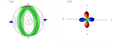 西藏定日县6.8级地震的中心震源机制解(a)及空间三维辐射花样(b)
