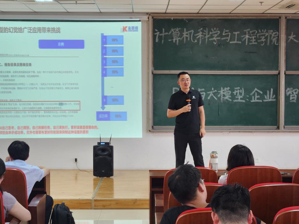 6月19日,计算机科学与工程学院在天仪楼408教室举行大模型系列讲座。本次讲座特邀珠海金智维信息科技有限公司研发与产品创意总监屈文浩主讲,学院黄猛教授主持。