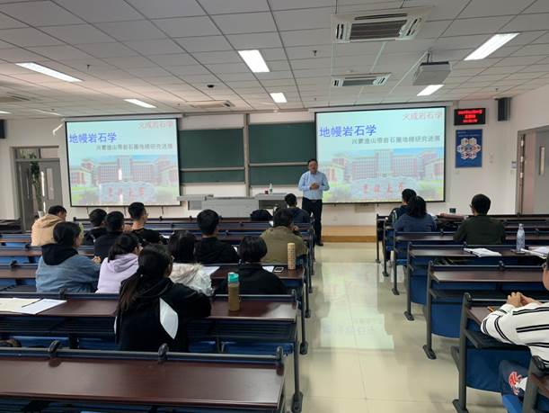 报告会上,张彦龙介绍了“幔源岩石的类型、矿物组成”“地幔岩产出的构造背景和相关样品获取途径”,从“地幔熔融过程”“地幔交代作用”等角度解释了幔源岩石的成因机制,并就“橄榄岩Re-Os同位素测试技术”“兴蒙造山带古老岩石圈地幔的东西差异”等问题与在座师生进行了讨论。
