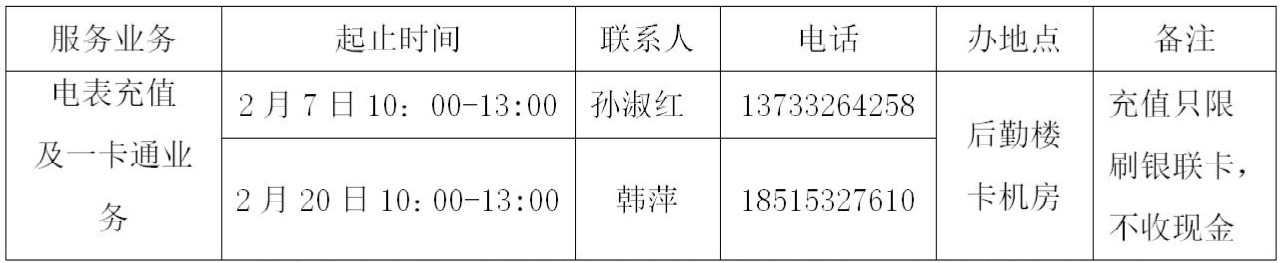 (二)家属区预付费电表充值预约及一卡通业务办理。
