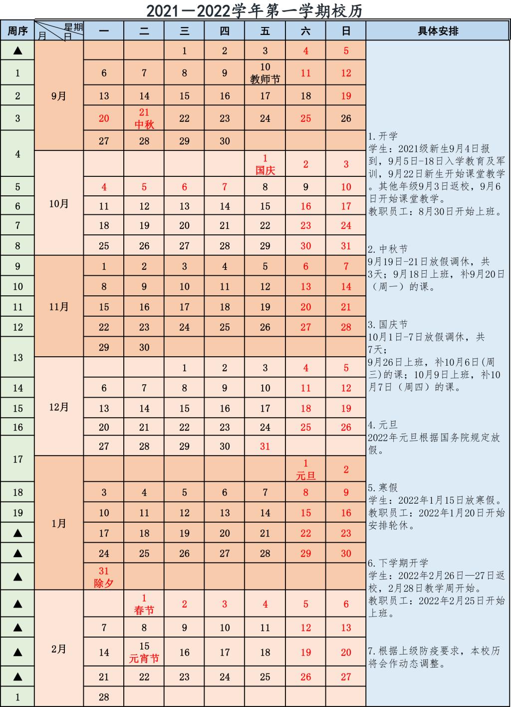 《2021—2022学年第一学期校历》已经2021年第12次校务会讨论通过,现予以公布,请遵照执行,并安排好相关工作。
