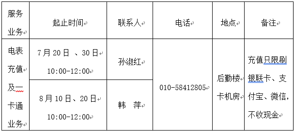 (一)家属区预付费电表充值预约及一卡通业务办理。