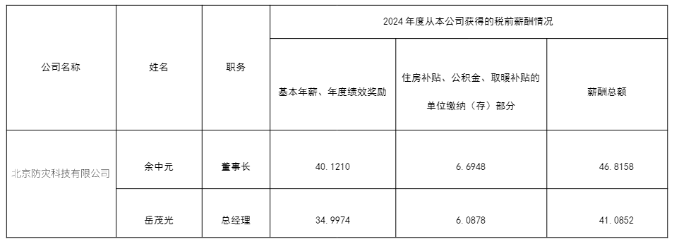 根据《中国地震局局属单位企业管理暂行办法》(中震财发〔2020〕105号)和《beat365中文官方网站校属企业管理办法(修订)》(防科发资〔2022〕40号)文件要求,现将beat365中文官方网站所监管企业2024年负责人薪酬信息披露如下: