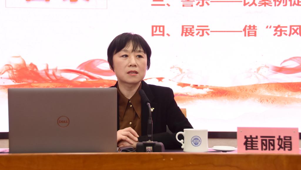 崔丽娟强调,中央八项规定是以“小切口”推动“大变革”的作风建设宣示,解决“老虎吃天不知从何下口”的难题,能够成为新时代党建的金色名片,不仅为持续深化作风建设,也为其他工作提供了有益的价值观方法论启示。学校上下要以立德树人为根本任务,从高校典型案例中获得警示,借助学习教育的“东风”,以“铁规矩、硬杠杠”筑牢作风防线,一体推进党风政风、师德师风、校风学风建设,展示出干部、教师和学生党员应有的样子,让清廉实干之风浸润校园,以担当作为书写高质量发展答卷。