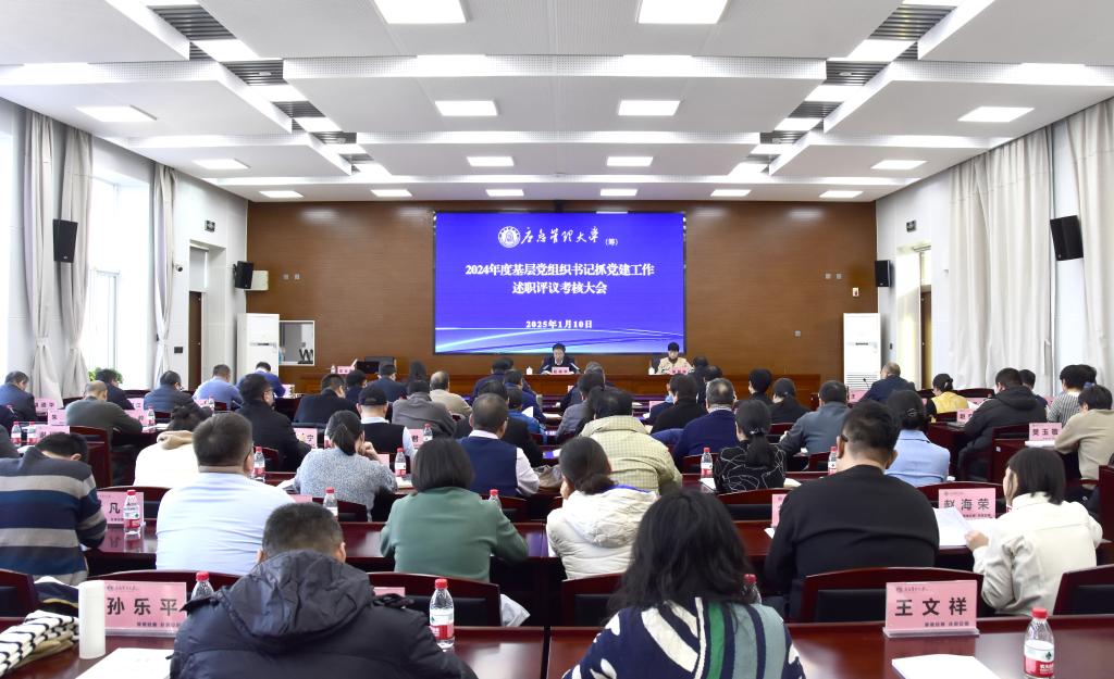 1月10日上午,学校召开2024年度二级党组织书记抓党建工作述职评议考核会。联合党委领导班子成员出席会议,各二级党组织书记(含负责同志)、相关党委职能部门负责人、党员干部、群众代表参加会议,会议由联合纪委书记崔丽娟主持。离退休党总支、地球科学学院党总支、生态环境学院党总支、电子信息工程学院党委、经济管理学院党总支和后勤党总支等6位二级党组织书记现场述职,其他二级党组织书记书面述职。与会人员对2024年度各二级党组织书记抓党建工作进行了测评。