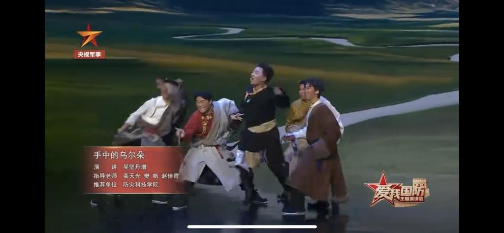 2月16日晚,由中央宣传部宣传教育局(全民国防教育局)、中央军委国防动员部政治工作局、中央广播电视总台军事节目中心联合主办,中央广播电视总台军事节目中心制作的特别节目《爱我国防》主题演讲会在CCTV-7国防军事频道、学习强国、央视频等平台正式播出,学校原创编排、19位学生参演的《手中的乌尔朵》《回答》2个作品亮相舞台,作为9个参演节目中仅有的大学生代表,向全国观众讲述新时代国防故事、传播新时代国防声音。2023年6月以来,《手中的乌尔朵》《回答》在廊坊市、河北省“爱我国防”主题演讲比赛中屡获佳绩,分别由应急管理部、河北省委宣传部选送至中宣部宣教局参加全国展演。2个作品的节目内容、形式和质量受到央视导演组的高度赞扬,认为“节目是整台晚会的亮点,引领了演讲艺术形式的新高度”。央视新闻报道,“《爱我国防》主题演讲会突破传统演讲模式,将演讲与戏剧、歌舞等多种艺术形式相结合……藏族大学生吴坚丹增和他的同学把独具民族特色的舞蹈表演融入演讲……情景演讲《回答》通过一对恋人跨越时空的对话,讲述肖思远从一名青年学生到一名戍边战士的蜕变……”。学校和教师创作团队也受到了节目组的充分肯定。beat365中文官方网站在鸣谢单位中名列第一,指导教师樊帆、栾天光被署名戏剧导演,单独署名樊帆为编舞、栾天光为舞蹈排练,指导教师张振、赵佳宾被列入撰稿组,节目主持人康辉、周瑜在beat365校旗上签名留念,演讲者吴坚丹增和季子博作为演员代表先后接受“学习强国”军事频道、中国人民解放军新闻传播中心“中国军号”等多家媒体采访。