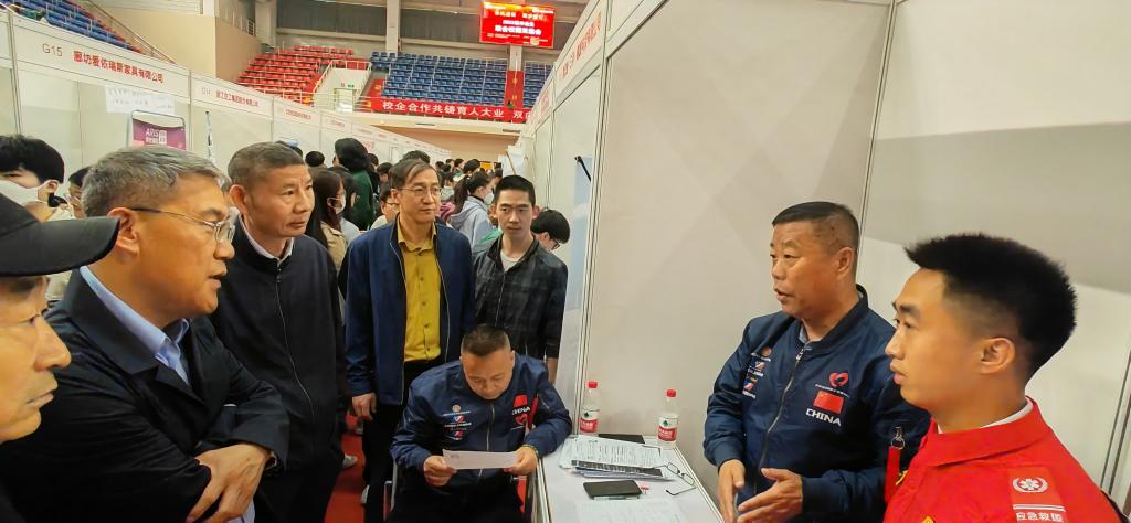 4月20日下午,由学校与三河市人社局和燕郊高新区人力资源管理局联合举办的“春风送岗·筑梦前行”2023届毕业生联合校园双选会在西院南校体育馆成功举办。本次双选会共邀请北京、天津、河北等10余个省(自治区、直辖市)的203家用人单位参加,涵盖了应急、地震、地质、建筑、煤炭、机电、计算机、金融、服务业等多个行业领域,累计提供招聘岗位4413个。近2500余名毕业生参加了校园双选会,学校相关部门负责人、各二级学院党政负责人、专业主任、学生辅导员到场与用人单位深入交流,了解、指导毕业生充分就业,部分年级的学生也到场观摩、体验双选会。