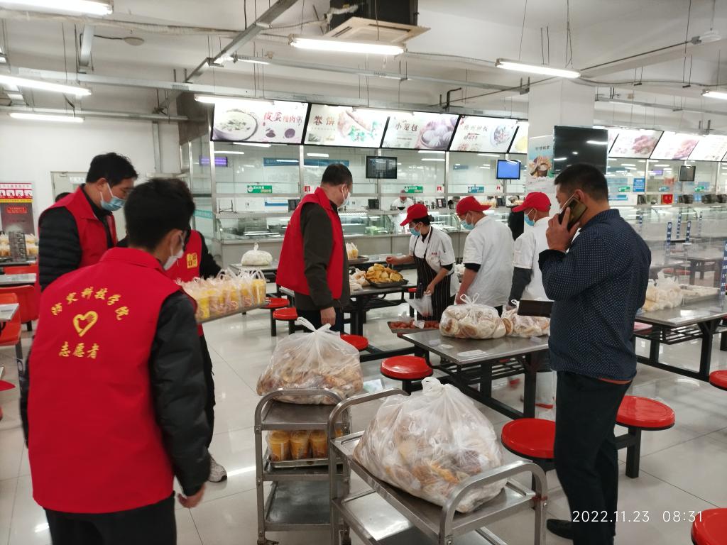 在这被临时紧急封控的空荡荡校园里,最惹人注目的,就是身着红色马甲,坚守在校园核酸检测点、道路卡口以及步履匆匆、车轮滚滚给六七千名学生送餐的志愿者队伍——