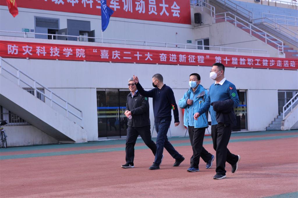 为掀起学习贯彻党的二十大精神热潮,以更加坚定的信念、更加昂扬的斗志、更加强大的动力,为实现中华民族伟大复兴的新征程上砥砺前进,激发教职工爱党爱国爱校的热情,11月10日“喜庆党的二十大 奋进新征程”健步走活动在学校体育场如期举行。学校主持党委工作副书记石峰,党委副书记、纪委书记陈光,副校长洪利与近500多名教职工一起参加了活动。