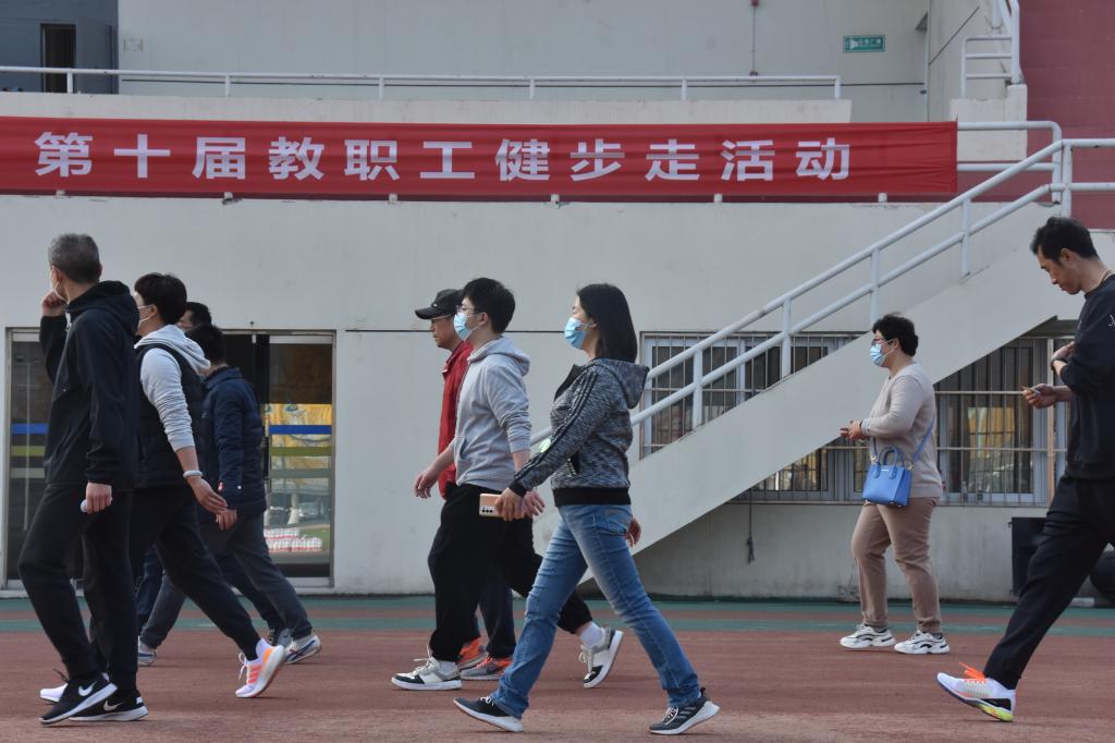 健步走活动作为全校教职工系列文体活动项目之一,已连续举办十年,教职工们对此项活动的热情越来越高。大家健步在美丽的校园,呼吸着新鲜空气,伴随着明媚的阳光,欢声笑语,三五成群结伴行走。你一言我一语,相互交流思想,畅谈过往,展望未来,气氛和谐热烈。
