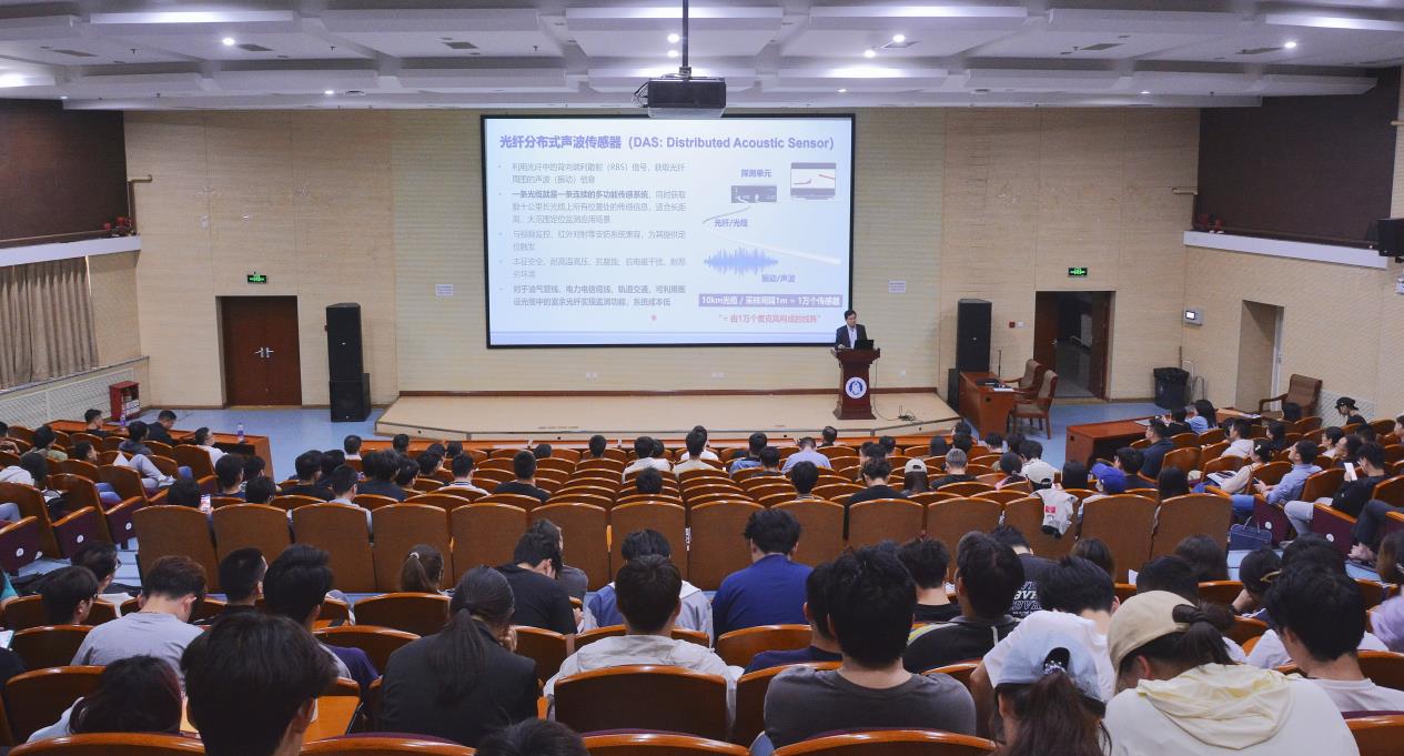 讲座中,何祖源教授以光纤分布式声波传感器(DAS)技术为核心,系统阐释了其感知机理、定位方法、典型技术路径,深入剖析关键瓶颈问题与最新技术突破。报告详细讲解了DAS系统如何利用光纤背向瑞利散射原理获取振动信息,比较分析了多种技术方案,并重点介绍了其团队自主研发的TGD-OFDR系统。该系统运用脉冲压缩、匹配滤波与旋转矢量合成等创新方法,实现无盲区、高频响、高信噪比的远程振动探测。何祖源教授还结合堤坝防汛、煤矿监测、油气井智能感知等多个典型应用案例,生动展示了DAS技术在灾害预警与应急响应中的广阔应用前景。