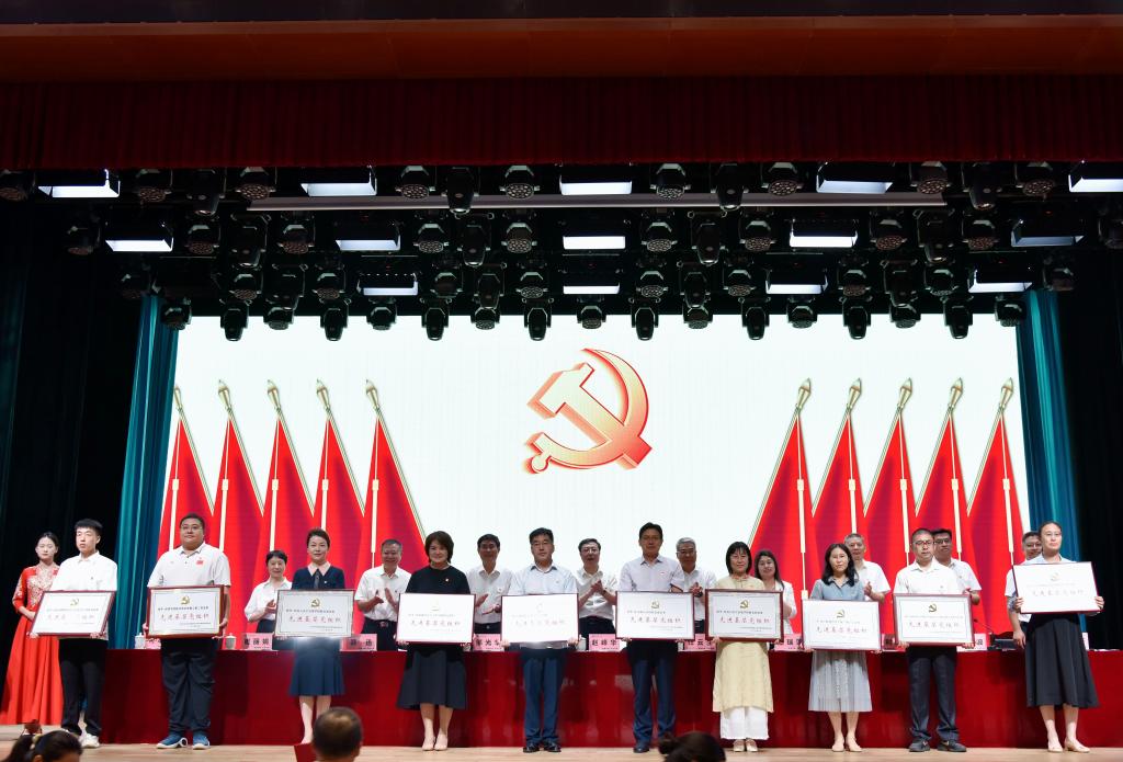 优秀党务工作者代表丰俊功、先进基层党组织代表王爱玲同志先后发言。党委组织部部长沈新颖领誓,全体党员重温入党誓词。