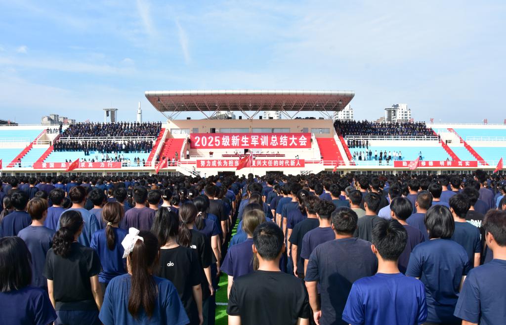 沙场秋点兵,青春正飞扬。9月26日上午,学校2025级新生军训总结大会在西体育场隆重举行。军训总指挥、联合党委常委、副校长顾秀根出席大会并作总结讲话,军训指挥部全体成员、2025级新生辅导员、全体军训教官和军训学员参加大会。会议由军训副总指挥、武装部部长张伟主持。