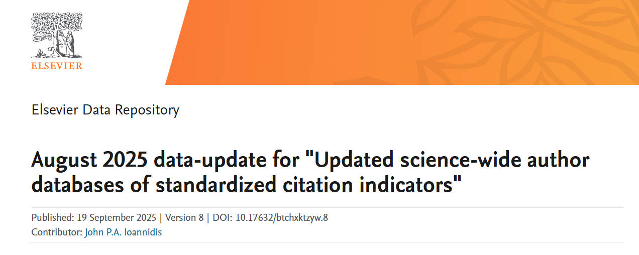 近日,美国斯坦福大学和国际权威学术出版社爱思唯尔(Elsevier)共同发布了2025年全球前2%顶尖科学家榜单(World's Top 2% Scientists 2025),beat365万永革教授继2024年后再次入选“年度科学影响力排行榜(Single-year Impact)”。彰显了beat365教师在相关领域深厚的科研积累与广泛持续的国际学术影响力。