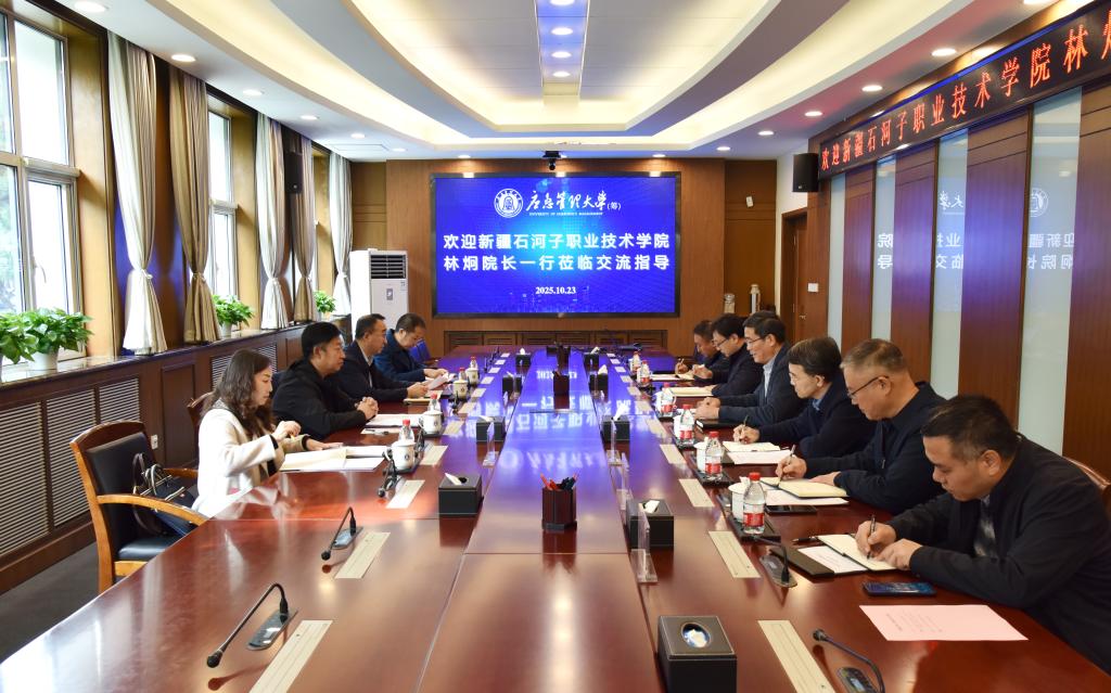 10月23日上午,新疆石河子职业技术学院党委副书记、院长林炯率调研组一行4人莅临beat365,围绕深化校际合作、应急和安全类专业申报、教育培训协同等议题开展调研交流。学校联合党委常委、副校长邹光华会见调研组,双方进行深入会谈。