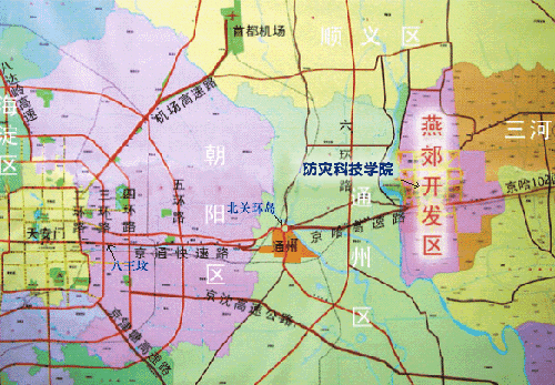 2.从北京南面来校,进京后经东四环、东五环换到京通快速路,或者经东六环换到通燕高速(原京哈高速),再按第一条路线行使即可。